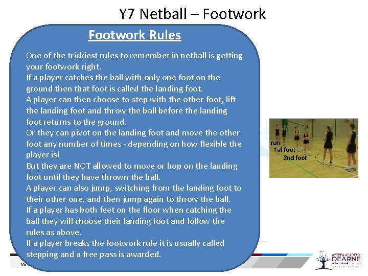 Y 7 Netball Footwork Rules One Of The